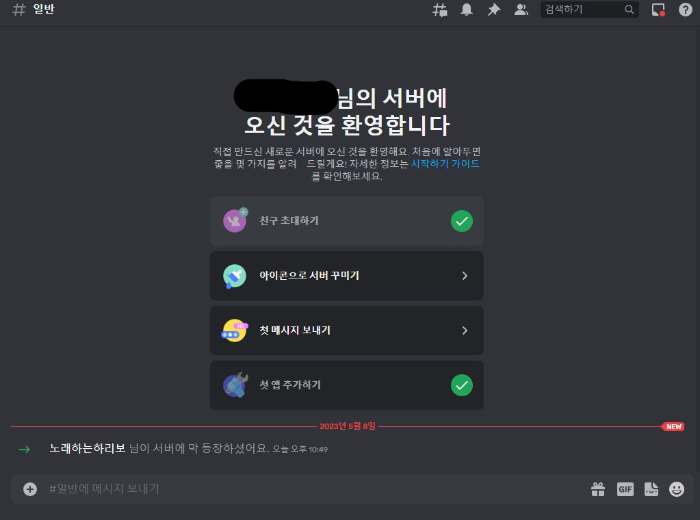 혹시 서버가 없다면 디스코드에서 내 서버 만들고 다시 진행하시면 됩니다. 내 서버 만들기 총정리 바로가기