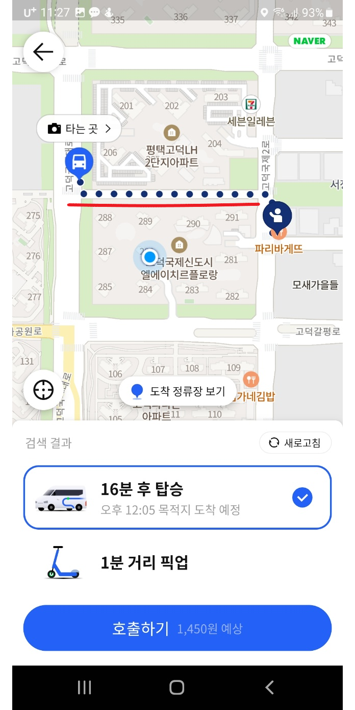 4 목적지 설정하고 똑버스 호출합니다.