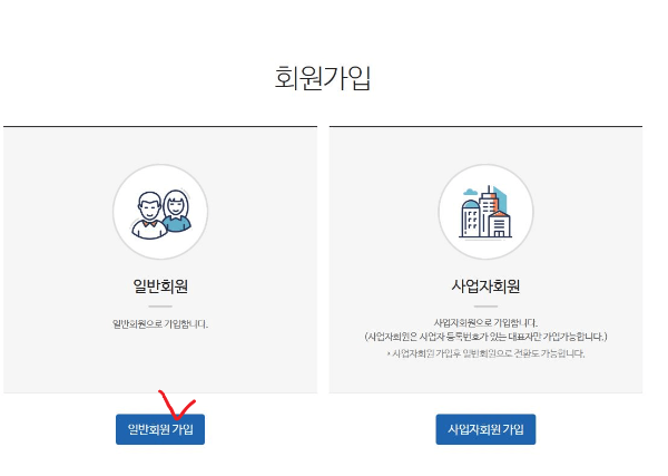 1. 메인화면 오른쪽상단 회원가입 누르고 일반회원 가입하기 (사업자시면 사업자회원으로 가입)