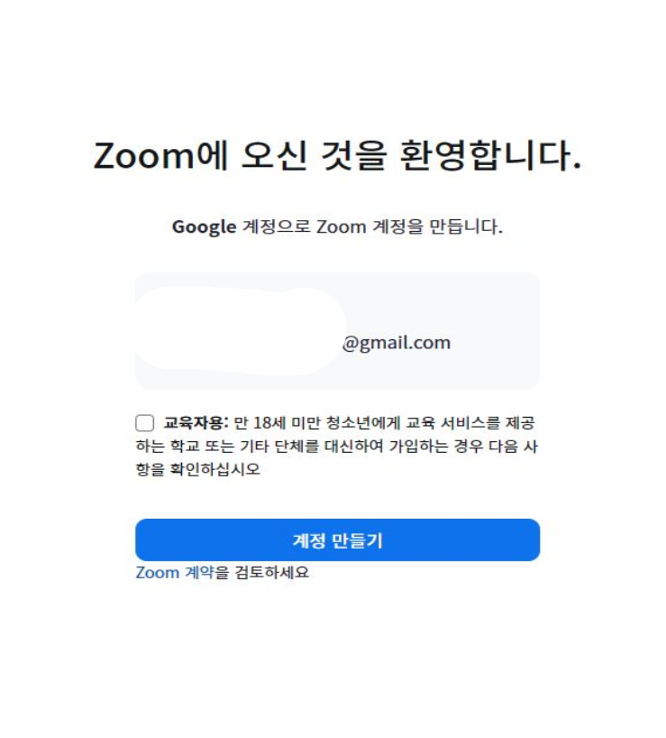 계정이 만들어졌고 교육자용 체크란은 읽어보시고 필요한 분들은 체크하고 계정 만들기 눌러주세요.